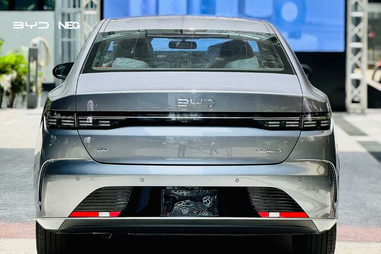 Đuôi xe trang bị cụm đèn hậu LED nối liền, phong cách coupe fastback giúp Seal 5 trở nên cuốn hút hơn so với các đối thủ cùng phân khúc. Với thiết kế này, mẫu sedan mới của BYD có thể chinh phục nhóm khách hàng trẻ, yêu thích sự năng động nhưng vẫn muốn một chiếc xe gia đình tiện nghi.